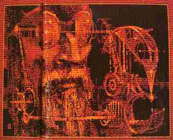There's nothing special about this particular smear of dots. In this case I started with a few square inches of looping AIRBRUSH strokes. By X-RAY COPYing differently sized and shaped sections 1 gradually expanded the pattern. Allowing the copies to overlap creates variations of the original pattern which are then copied, overlapped etc. With DEGAS Elite you can add further variety by rotating blocks of pixels during this process. Some diversity in the density of the pixels is a good thing. You may open up overly-clogged areas by replacing them with a BLOCK COPY from a less dense area.