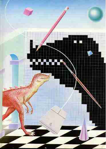 Let me explain further. After some fooling around, I'd managed to write a simple little program which went down into low memory, found the DESKTOP.RSC, determined the offset from the start of the resource file to the start of the actual icon images, and then patched the images to be something else. I had no tools for actually building a data file of images-the program I wrote simply had a different image (a floppy disk) coded into it, which it used to replace the file cabinet image. I drew the disk image by taking a piece of graph paper, plotting it out, and then converting that plot into integers, which I stored in an array. But back to the story.