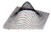 The most common way of drawing 3-D graphs is to plot sections along lines of constant x and or lines of constant y. The graphs can be thought of in two different ways. One approach is to think of the graph as a wire mesh where you can see through the "surface" defined by the function (see Figure 1). The second approach is to consider the graph as a solid object (Figures 2 and 3). In that case, parts of the graph closer to the viewer can hide other portions of the graph.