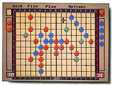 Under the Options menu, you can choose one- or two- player mode. Under the Options menu you can turn on or off alarms and whether neutral stones will be set up on the playing board. You can also select the level of play (against the computer)-select Advanced for a challenge suited to world-class play!