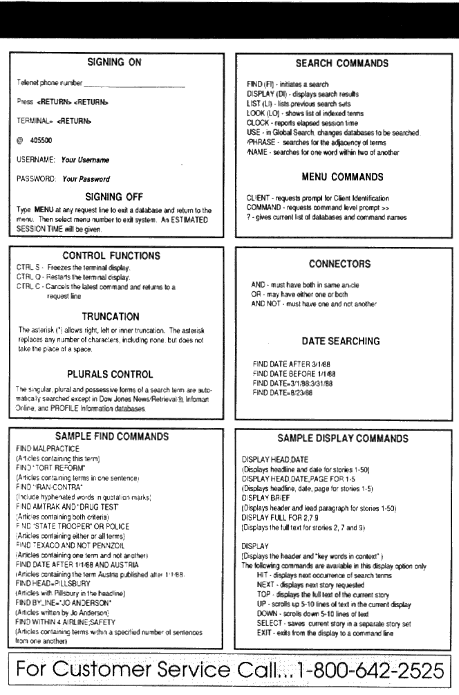 Search fields vary among newspapers. Some fields are "intelligent": a search in the San Francisco Chronicle for stories involving Elizabeth Taylor will dig up stories involving "Liz Taylor" as well. The same is true for "George Bush," "President Bush" and "Vice President Bush." Each newspaper's head librarian decides on the searchable keywords for each article. Online help is available, but the quick reference card tells you "about 80 percent of what you need to know," according to DataTimes Account Executive Vickie Hutchinson. "But in terms of your search, you're at the mercy of the person with the byline. Therefore, this kind of service might affect the way articles are written - in the future, stories might be geared toward this kind of service."