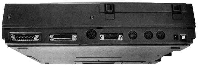 Specifically, STACY has the following ports: Centronics parallel, serial, DMA, mouse/joystick, joystick, MIDI in and out, monitor and floppy disk drive. In addition, STACY has a special power jack, so that it can be operated from a battery-saving wall external power supply. Finally, STACY has a special bus port with the same connections as the internal Mega bus port; the pin-outs are different from the Mega plug, but electrically, it's the same. This means that any bus-port device now existing for the Mega, such as the Moniterm big-screen monitor interface or JRI's GenLock, could be made to work with STACY.