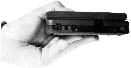 When Atari says that the Portfolio is the size of a VHS VCR tape, they're right. It's the same width and thickness and 1/4-inch longer When you pop the lid, amazingly, there's a full QWERTY keyboard with additional keys for special functions.