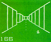 At the start of each game, you'll be asked to push the [SELECT] key to adjust the size of the maze. This level of difficulty can vary from a fairly simple 11 by 11 grid maze to an almost impossible 35 by 35 maze. When you press the START key, your random maze will be constructed on the screen; and you will then be placed inside of it.