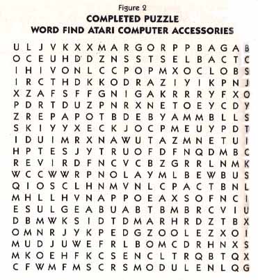 Supermarket shoppers are already familiar with "word-find" puzzle books, which grace the checkout-line magazine racks of America. The program presented here will enable you to make your custom word puzzle on any Atari equipped with a disk or cassette, and a printer (40- or 80- column). This puzzle might prove useful as a spelling study aid, as a quiet alternative to video games, or as party entertainment. In fact, I originally wrote this program for a friend who needed it for sales promotion party.