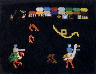 Meanwhile, back on Rugby Circle, Bob had to teach himself the C programming language. Then the partners were faced with the eternal question: "Which came first, the buzzard or the egg?" Troy wanted to create tiny jousters on a computer that was capable of fine graphic resolution, but had no existing graphics tools. So he needed a sprite editor to create a bouncing bird on a machine that doesn't have sprites...
