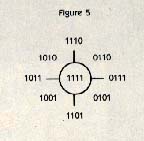 Beginning to look familiar? Take a look at Figure 5. As mentioned, joystick port 1 is location 632. Although this location holds a byte (8 bits) only the first four bits are used to read the joystick. The other four are unused. (By the way, these four bits, or half-bytes, are referred to as nibbles.)