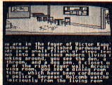 Three graphics areas use the upper third of the screen with the rest devoted to text. These three areas are sometimes combined to form larger pictures. While colorful and cartoon-like, they generally lack definition due to the small screen area being used. Having seen them a few times, I found game play was speeded considerably by switching to an all-text mode.