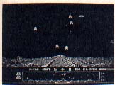 The graphics view is out-the-cockpit in smooth, wireframe 3-D. Many landmarks-buildings, trees, bushes--can be seen on the ground below. Night and cloud-cover missions are available as well as the standard daylight/clear combat conditions!