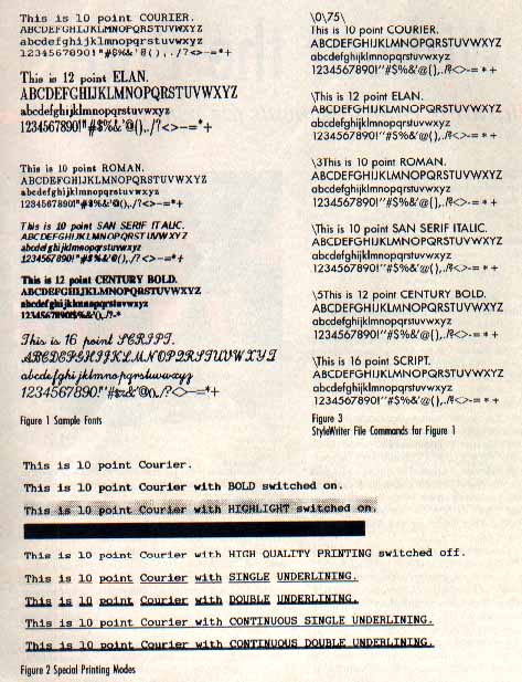 StyleWriter is actually very easy to use. It comes preconfigured for your specific computer and printer, so all you need to do is hook it up and it should work immediately. The print styles are controlled by simple codes that you type into your word processor text. In addition to changing fonts, you can also use a variety of special printing modes (see Figure 2). Note that the inverse printing (white on black) did not work very well with the Epson FX-80 I used for this review.