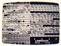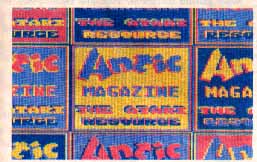 This works fine for two-column printouts, but full-page composing is difficult. You can typeset your text with custom 8x8 character sets in 64 sizes. Five fonts are provided, but there is no font editor. You can draw freehand with a joystick or touch tablet, or load pictures, Print Shop icons and short text files.