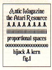 For instance, put 1 on the editing screen, clear the screen, and create the uppercase A. Store the uppercase A as 1, the R as 2 and use M instead of m. Note the changes as you create the font. Type "1ntic magazine, the 1tari 2esource." With some font editing and minor character manipulation, your second temporary font is ready to be saved to disk.