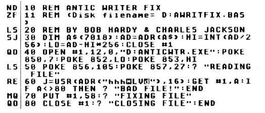 I was fuming over the problems with Antic Writer (July 1987)-printer timeouts and having to use a FIX XL translator disk on my 800XL-until I discovered a fix! I am in fact writing this letter with Antic Writer, and it will print without the translator disk.