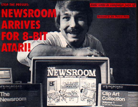 In May 1987, Antic kicked off a write-in campaign to convince Springboard Software to make an 8-bit Atari conversion of its popular Newsroom home publishing program. Two months and hundreds of letters later, Spring board president John Paulson gave the go-ahead. The Atari Newsroom was released in March, 1988.