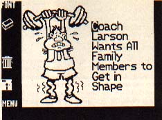 Text is added at the Copy Desk, one panel at a time. Three large fonts are available for headlines and two normal fonts are provided for the text itself. These normal fonts are scaled-down versions of large fonts, not new styles. All five fonts are easily readable. No capabilities are provided for creating new fonts, importing any of the hundreds of existing screen fonts in the public domain or changing font size.