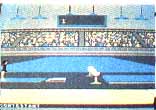 The two swimming events are similar. One is four-man relay, while the other is just a two-lap race for a single swimmer. You control the timing of your swimmer's start and kick-turn, and apply power to the swimmer's arms at exactly the right moment by pressing the fire button.
