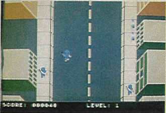 You control the squad leader with your joystick, and he shoots only in the direction he is traveling. His machine gum has a moderate range and it isn't too difficult to take out the gang members in the early levels.