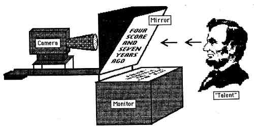 But let me backtrack just a moment because some people don't even know what a teleprompter is. A prompter is a system by which the actor -- or in official film/video lingo, the "talent" -- can actually read his script while pretending to have memorized it, looking straight at the camera.
