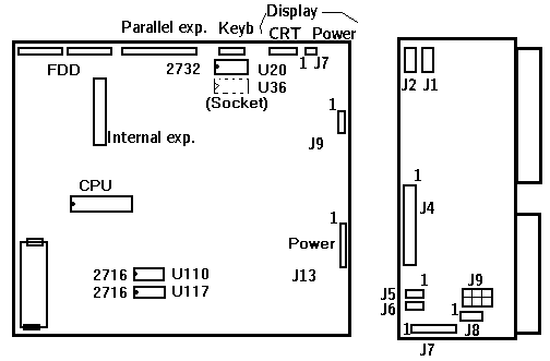 J9 - Power connector, ?? 1 - GND 2 - -12V 3 - GND 4 - +12V 5 - GND 6 - +5V J7 - CRT power connector |