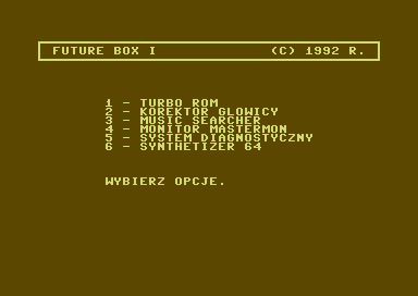 | Features: - Turbo tape - Tape head tuning - SID searching software - Mastermon monitor - Diagnostic system (testing RAM, keyboard, joystick video, SID, etc.) - Synthesizer 64 - simple music synthesizer with nearly all SID controls easy accessible from keyboard.