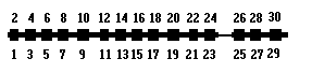 16 - B7 17 - C3 18 - C2 19 - C1 20 - C4 21 - C5 22 - C7 23 - C6 24 - GND 25 - IN0 26 - OUT0 27 - IN1 28 - OUT1 29 - IN2 30 - OUT2 |