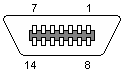 Printer connector - 14-pin female Centronics-type connector: