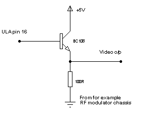 with base connected to resistor (which goes to ULA pin 16), taking 5V