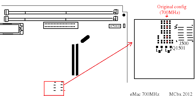 Overclocking 800MHz unit is more efficient, as its CPU has less heat dissipation and lower voltage. Here you can read how to get 1.33GHz from 800MHz eMac. I confirm, it can run yet is spits fire. Keeping hand near air output is impossible.