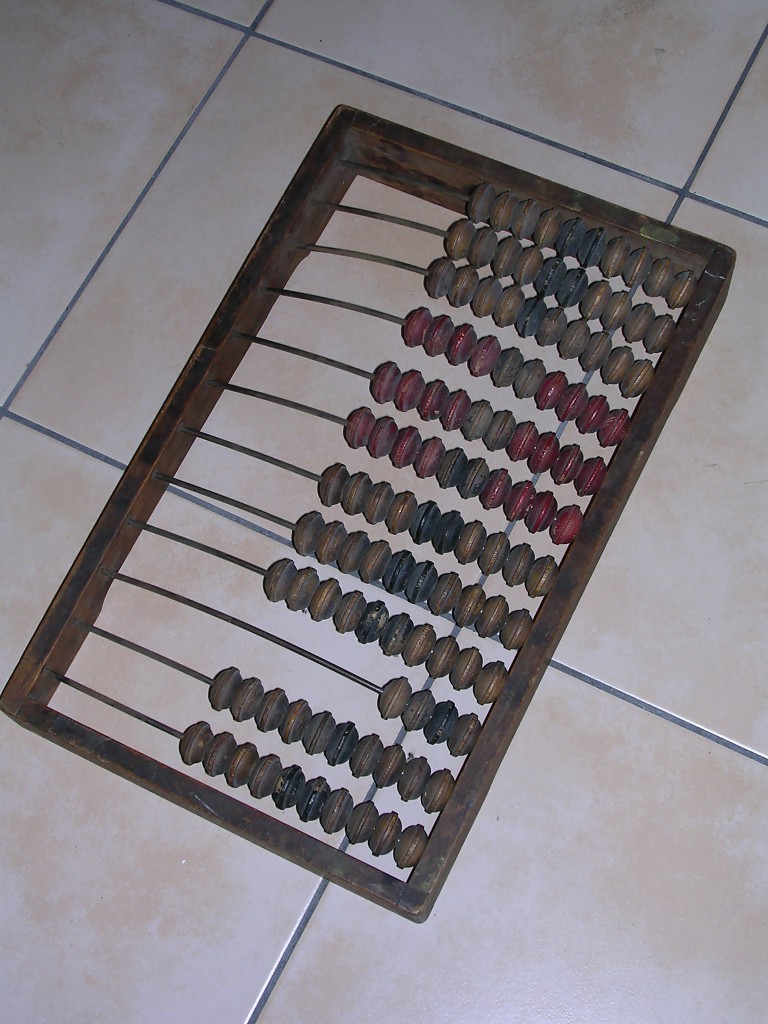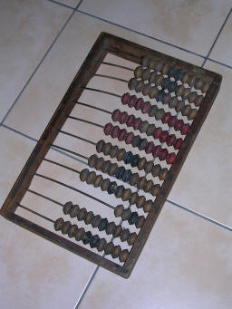 Known as the first calculator, abacus evolved from set of stones placed in carvings, through tables with sliding parts, to different combinations of beads on wires, usually enclosed in a frame. It allows to add and subtract numbers easily, yet multiplication and division is possible by adding the same number or subtracting divisors. Today it's mostly used as maths teaching aid, but in former Soviet Union countries it's still used in many small shops because it doesn't need electricity and can be used very fast by experienced person.
