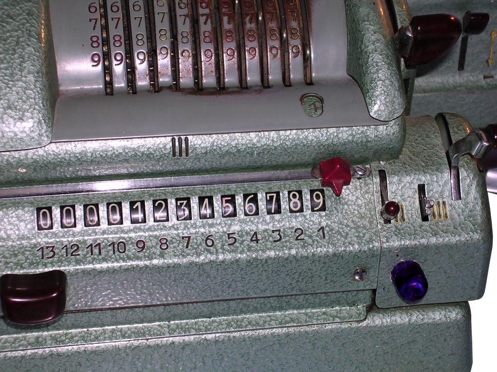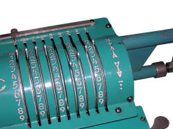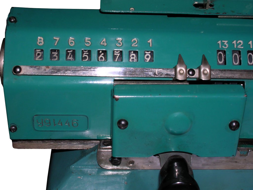 Revolution came in 1890, when W. Th. Odhner, Swedish engineer working in Russia, started to manufacture pinwheel arithmometers en masse. These arithmometers, invented 15 years earlier, were much cheaper and simpler, so they became available for offices or bureaus. "Odhner arithmometers" or "Brunsviga" arithmometers (clone) were manufactured in many factories to late 1970s. You can read more about Odhner arithmometers reading about Feliks arithmometer, as it's Odhner's clone.