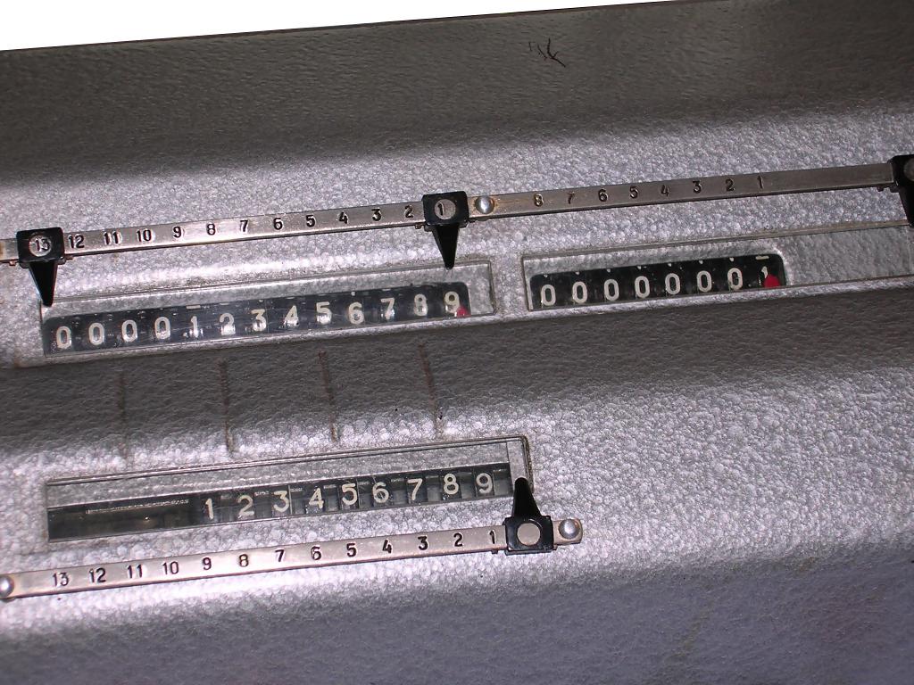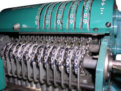 lever to make ratchet or gear rotate other gears to set a number. You