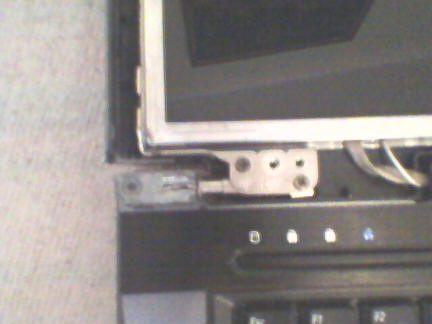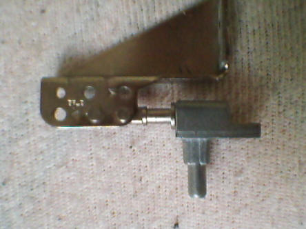 In the left photo (lower part of hinge), you can see my broken hinge and how it's secured to lid. In the right one a screw securing upper part of lid and one of 4 screws keeping hinges to LCD panel. These look like this: