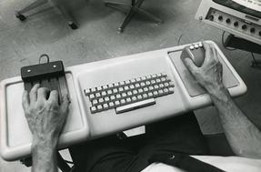 | If you see an old Engelbart 1968 demo, you may notice that they are using technologies which became widely used 30 years later. Computer mouse, hypertext, remote collaborative text processing or screen sharing (analog version) are presented there working on a specific mainframe modified to support ca. 100MB of disk memory (yet I still don't know bytes or words, as they are often mistaken in modern documents because in 1960s byte had 7 or 8 bits and word was 24 bit, but grew to 25 bit when transferred specific ways), probably few CPUs and graphic terminal displays. You can see the original paper about the system. Another article from 1967 shows photo of early chord keypad prototype made of keyboard switches, it is called "pushbuttons". |