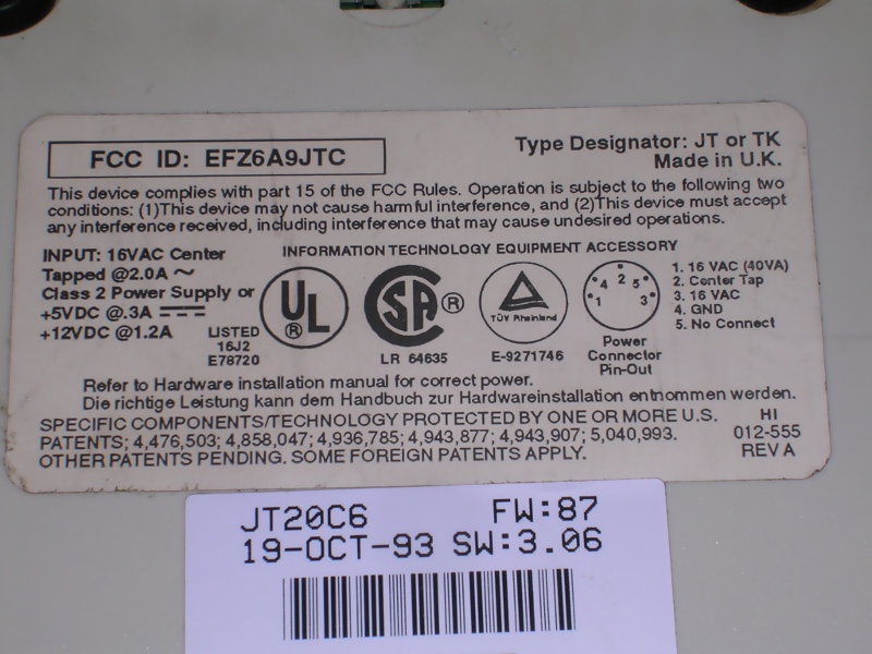 Notice how the tape is loaded in, it sticks out of the streamer and it's a normal thing. Last picture shows power supply pinout (DIN5, 1 - 16V AC 2A, 2 - Center tap, 3 - 16V AC, 4 - GND, 5 - nc) |