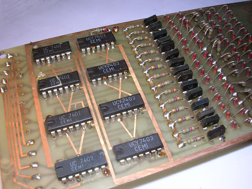 Well, this is not exactly data storage unit, but it's for storing some digital states. This type of programming device was used in simple, dedicated digital systems to program only necessary information into system. It was of course read-only, storing only few bits of necessary set-up information. This item comes from early system used to automate work cycles of some printing machinery. It was made in Poland, but controlled machine was foreign. The system was made probably to help automate the process.