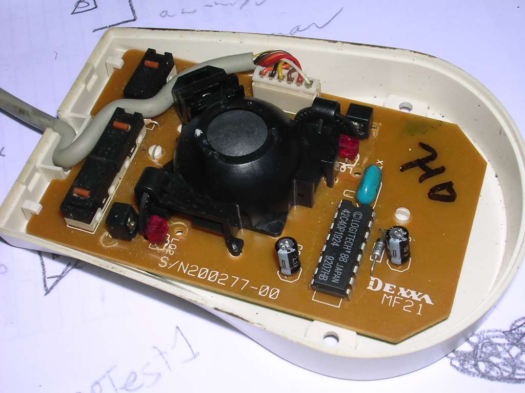 buttons and in PCB there is place for 3rd. Optical transceivers are just mounted on PCB, this is standard in all modern mice but these times was only in cheap ones as there is a bigger risk of dust contamination. I got this mouse with broken wire in cable, so I replaced the cable. What is interesting it still works and the soldering on PCB is surprisingly good in quality. |