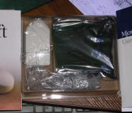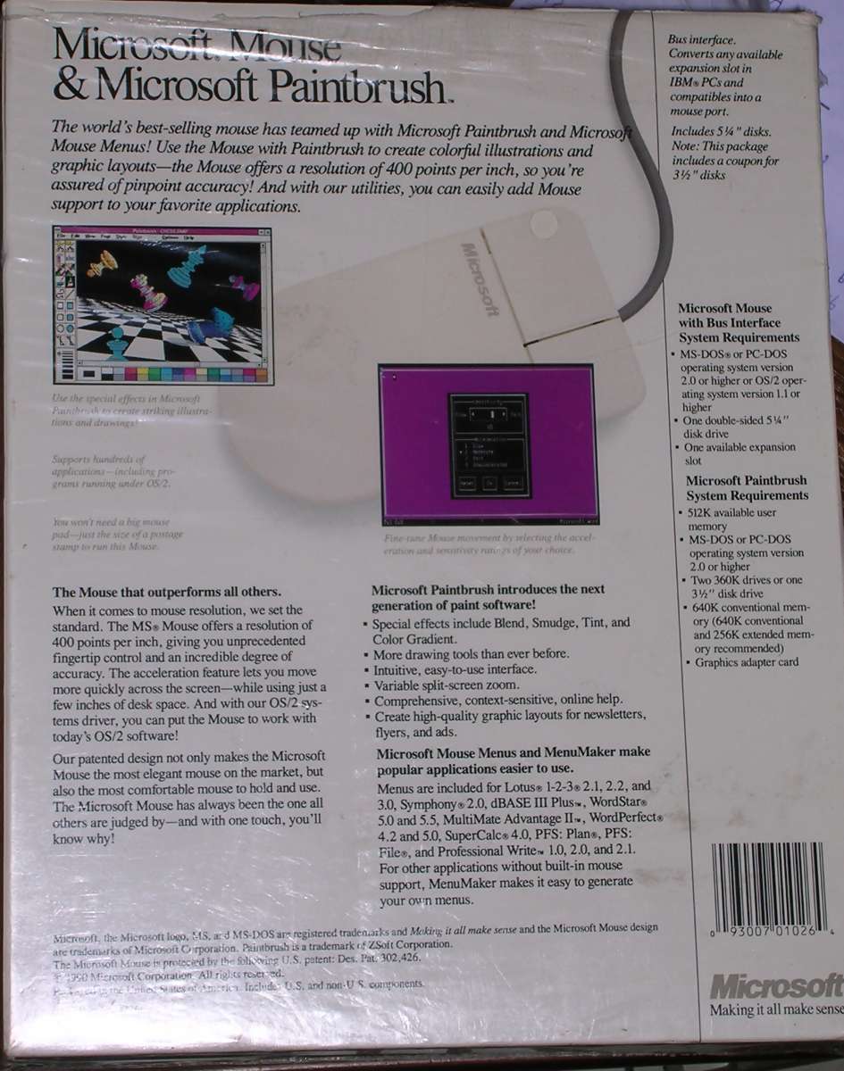 | Information: In early days of PC computing, there was no standard interface for mouse. Logitech and Mouse Systems went with serial port (but different protocols). IBM went with keyboard port extension called PS/2. Microsoft went their own way with inPort mouse or Bus Mouse - a mouse which needed ISA board. The mouse itself was simple in construction, giving alternating-phase signals at output (like Amiga's one). All decoding was made by ISA board with dedicated microcontroller chip and not much more. This was another typical example of vendor lock-in attempt. This mouse started another tradition: Adding graphics software to mouse packages. Microsoft added their Paintbrush program, other gave e.g. Rainbow Paint. My unit is in a brand-new condition - it is in a box, all envelopes are sealed, manuals are present, even disks are in a sealed envelope with license. I opened foil only to check is everything inside. |