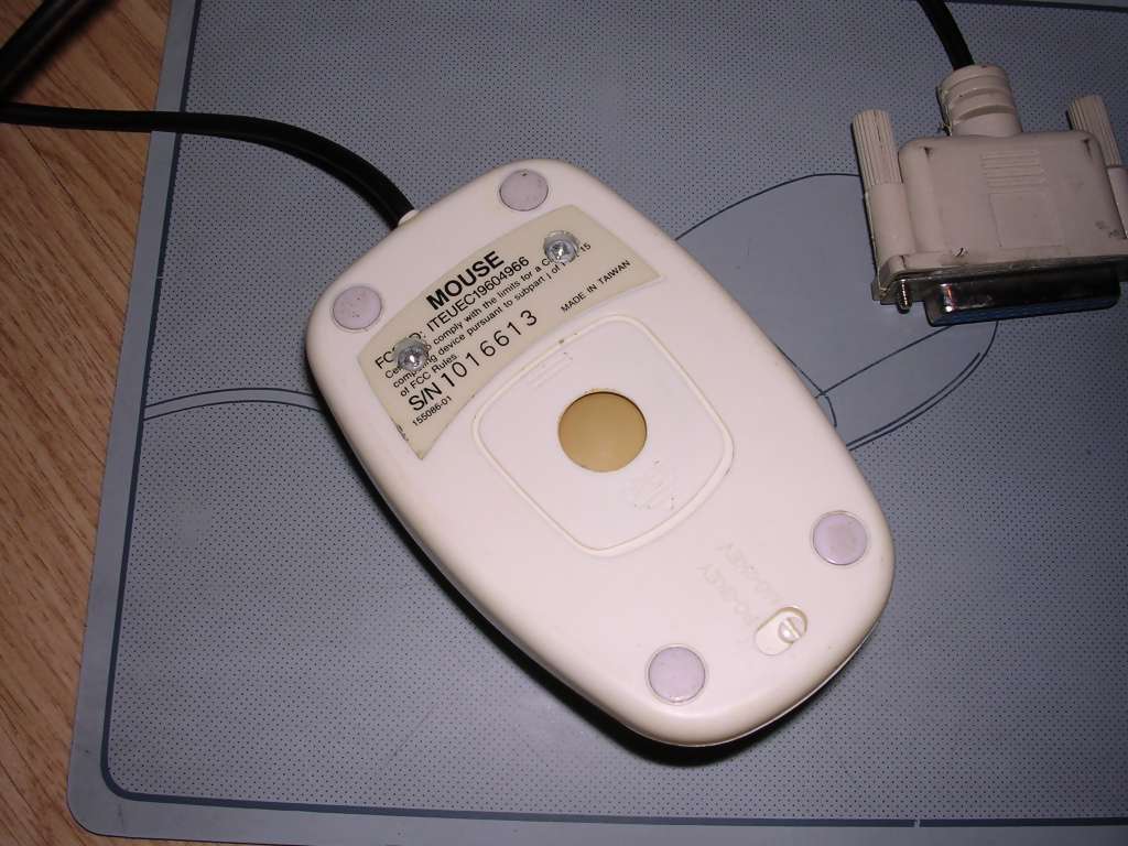 | Information: Origins of this mouse starts in early 1980s, when Microsoft designed serial port mice for Xerox. In 1985 they made a PC version, but there is a confusion about its versions. Although it has the old shape similar to ones made for Xerox and later PC, this one must be a bit newer as it has a converter to connect it to 9-pin serial port, and these ports were not massively present in older (first half of 1980s) PCs. Its sliding part is round which makes it move well in all directions, but unfortunately it makes its bottom dirty very quickly - it needs cleaning more frequently. |