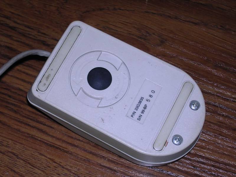 | Information: This is a small mouse offered with some IBM late Aptiva and PS/2 computers, as well as re-started PC line. However, more frequently larger mice were sold. These small mice were chosen by customers who purchased ThinkPads - to have a portable mouse for a portable computer. You can see similar mouse, but black in ThinkPad 850. This mouse was designed with portativity in mind, as it is lighter than typical mice and its buttons are scaled down especially to prioritize left button. |