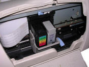 cartridge and remove some ink using syringe. Most of these printers bought with home computers were never used with "photo" cartridges as they were expensive and required special paper for best effects. The printer came with manual, driver disks and font pack disk.