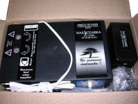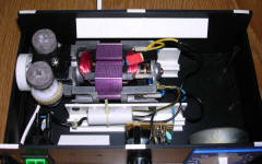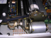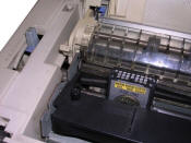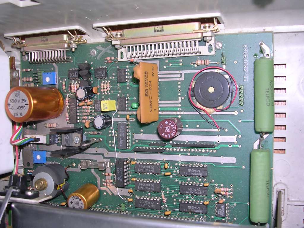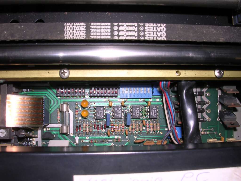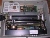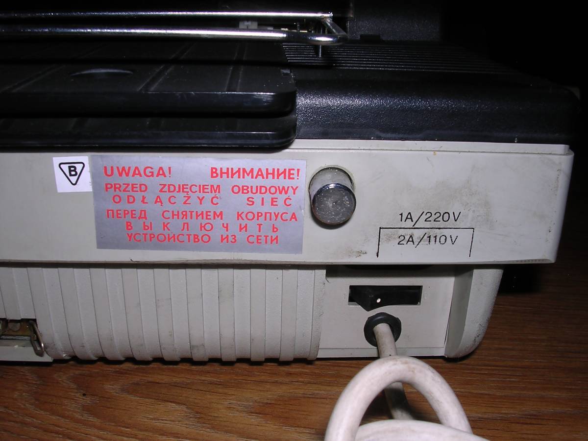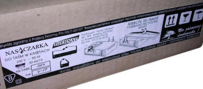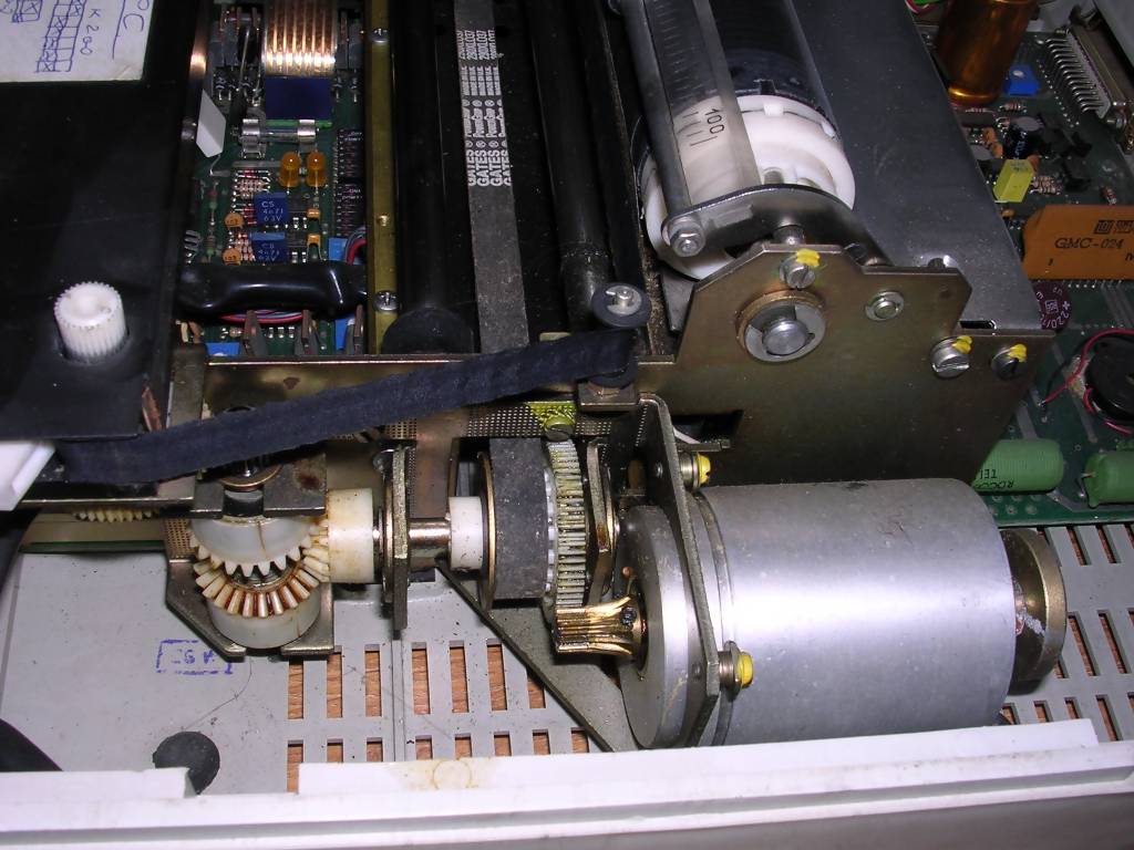from it making it not go equally on length. About quality of this process - everything depends on ink used. Good ink will make the ribbon print like new, bad ink may even block pins. Fortunately this unit is newer so it has no light bulbs inside - speed setting is made with a thyristor. It is nearly the unit described in patent, yet holding cartridge in place is done by other felt cylinder keeping parts. The timer is only for alarm, it doesn't break circuit and is not connected to circuitry at all. It was built in 1996. |