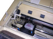 mostly used in ASCII printing. The problems are coming usually when it comes to using this printer not in an office system. Large vertical page margins make this unit not so usable for home printing and configuration, made using menu printed on paper, requires patience. The ribbon is in small cartridge which, contrary to many printers, moves with head. |