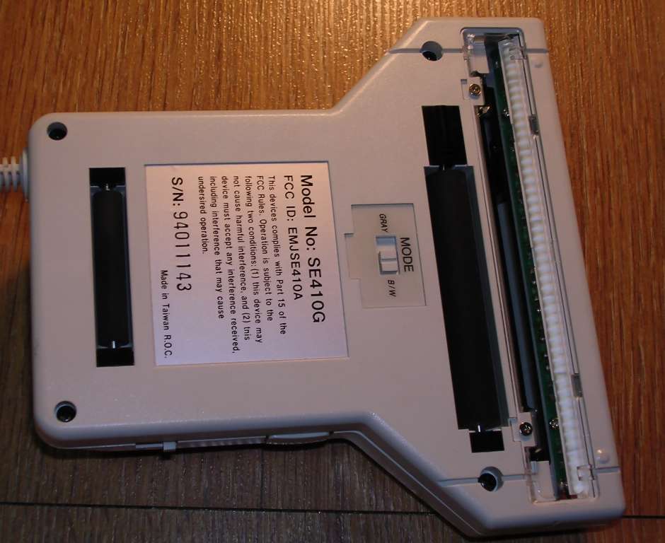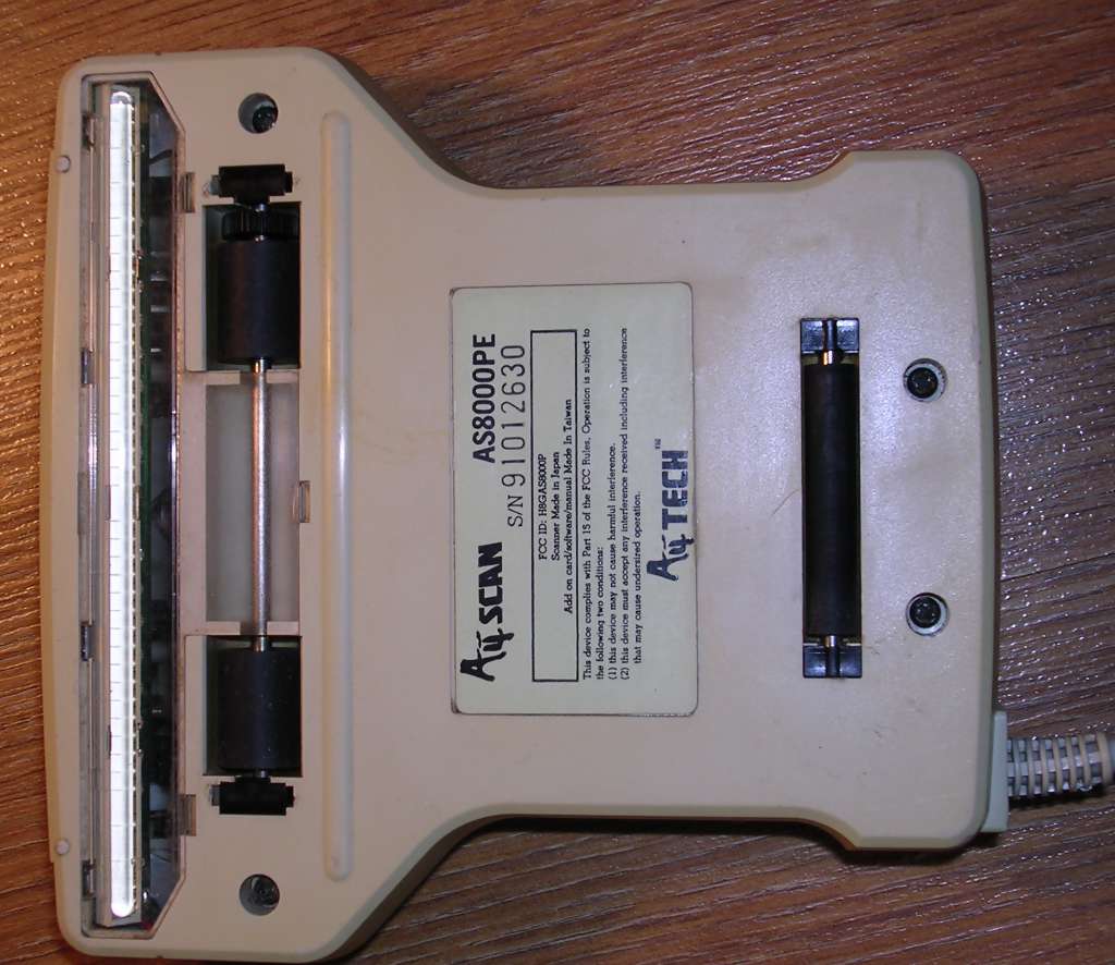 | Information: And now something totally different - a colour handheld scanner. Mustek CG-8000T was a handheld scanner from mid-1990s (ca. 1994) which could scan in 24-bit color and resolution was probably 300dpi. It was connected to the PC still with ISA board and simple interface so even this high resolution was hardly accessible, requiring to move scanner slow enough to scan 3 base colours by means of filtering, process it and send to PC. |