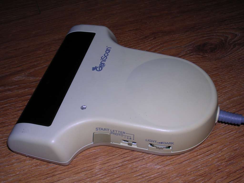 | Information: A typical early-1990s handheld scanner, with 400dpi maximum resolution. Although technically it's 4-bit grayscale (16 levels), it's usually classified as monochrome. Its LED illumination is green, so it's not so good with non-contrasting colours in documents. It is connected by ISA board and is supplied with own DR.GENIUS software for scanning and image processing. Some versions were supplied with OCR program. Everything packed in a nice portable box. It works under DOS, but there is an old Linux driver which requires some significant work to run in modern distributions... if modern distributions can run on ISA-based systems.