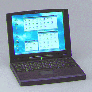 Canon was not good at notebooks manufacturing, so this unit is in fact only marked as Canon. The same notebook was sold as Texas Instruments Extensa 900 line. The only difference is in some connectors making TI's power supply unit not compatible with Canon notebook. The dock is Canon's work based on Extensa's "Mobile Productivity Base". It has its own expansion option but no expansions were developed for it.