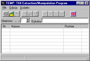 Manipulation Program Version: 0.96 (2009) Utility to manipulate T64 files. There are some front-ends for DOS programs related to C64, such as PUCrunch or Tape64, it can also convert C64 pictures to Commodore 64 executables (PRG). If you do the hardware modifications with connecting C2N to PC, you can make your own C64 mixtapes! WARNING: Source code lost in 2013. Binary only. Written in Delphi so it works even in Windows 98.