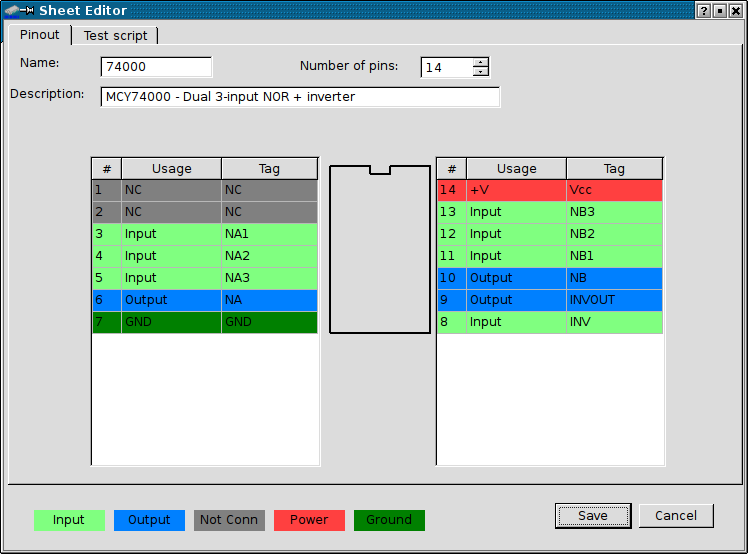 Then you must configure your tester according to drawing and after putting IC in socket hit OK to start the test. Any time you can display current sheet's power configuration by pressing Show Power Requirements button in toolbar.