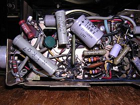 ヒータ直列部の50Ωなどは図面にありませんが、きっと真空管の寿命が問題になって急遽後から追加したものでしょう。(左上写真の赤いのがそれ)