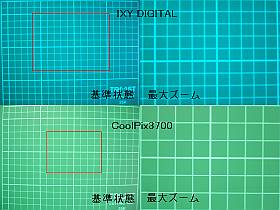 確かに、このIXYは2倍弱でしたが、逆にCoolPix3700の倍率が妙ですね。この調べ方だと、3倍も無い。21/8=2.6倍だが...(まぁ、いいけど)