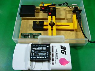 ところで、その充電器の話ですが、先日買った廉価品は、他のバッテリでの使い勝手があまりよくなかったので、むしろ今回の充電には(以前不調だった)自家製の方がまだマシな感じ。(左写真の上側)